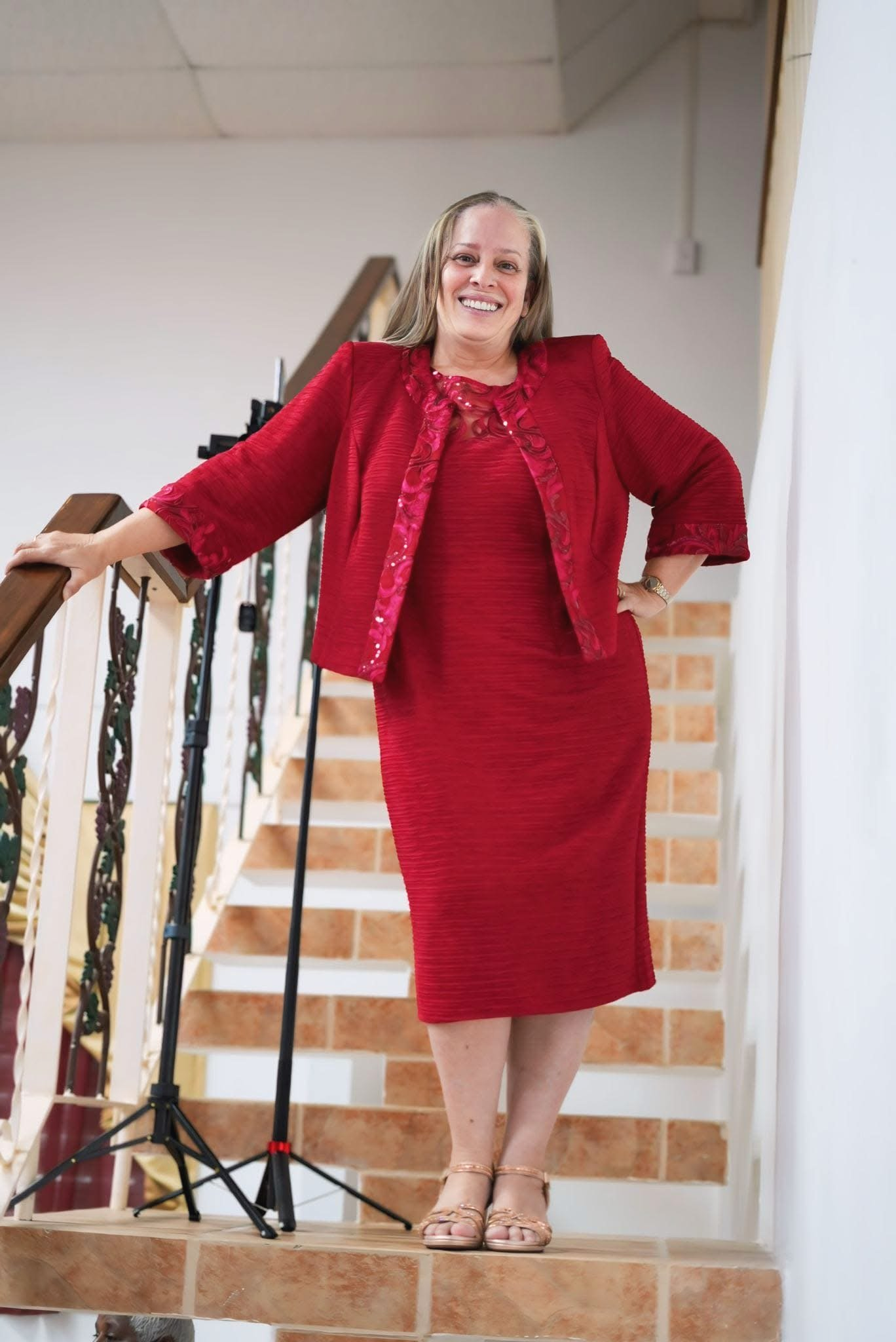 [Sandra Ivette at the stairs of Iglesia Pentecostal La Vid Verdadera in its 45th anniversary]